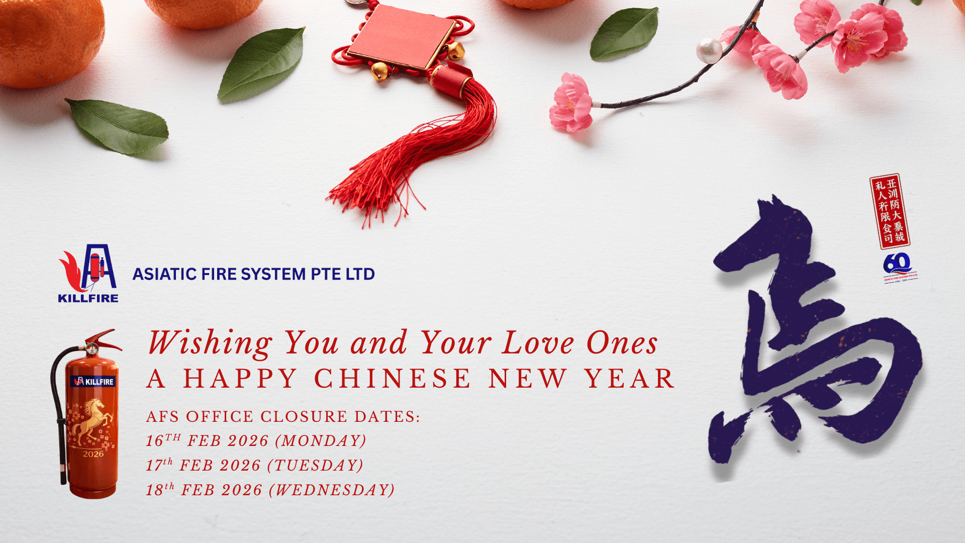 As the Lunar New Year approaches, all of us at Asiatic Fire System Pte Ltd would like to take this opportunity to express our heartfelt thanks to our customers, partners, and friends for your continued trust and support.
